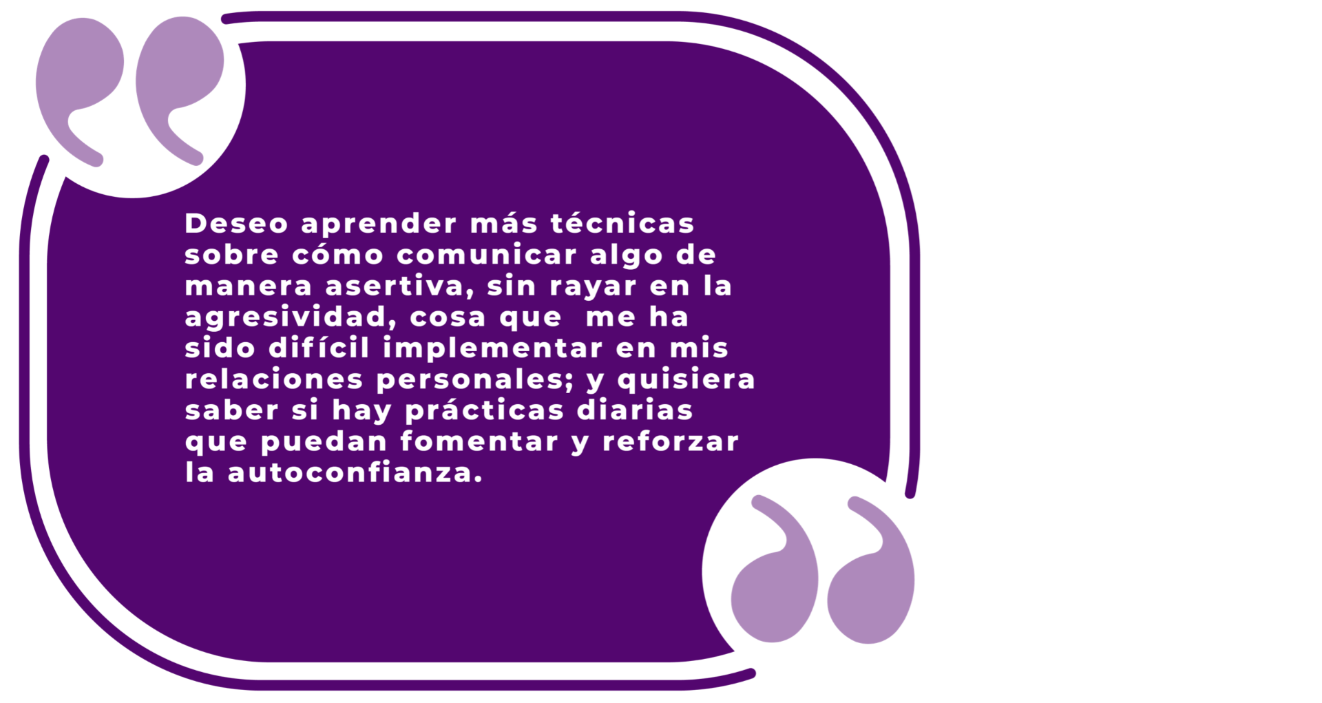 - Conocer y practicar las competencias de la autoconfianza y la asertividad para lograr el desarrollo personal y una comunicación saludable.